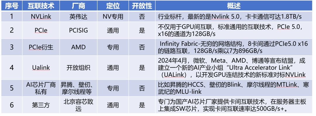 Nvidia GPU互联技术最新的是NVLink5.0,与前代4.0相比通道数不变,速率翻倍至1.8TB/s