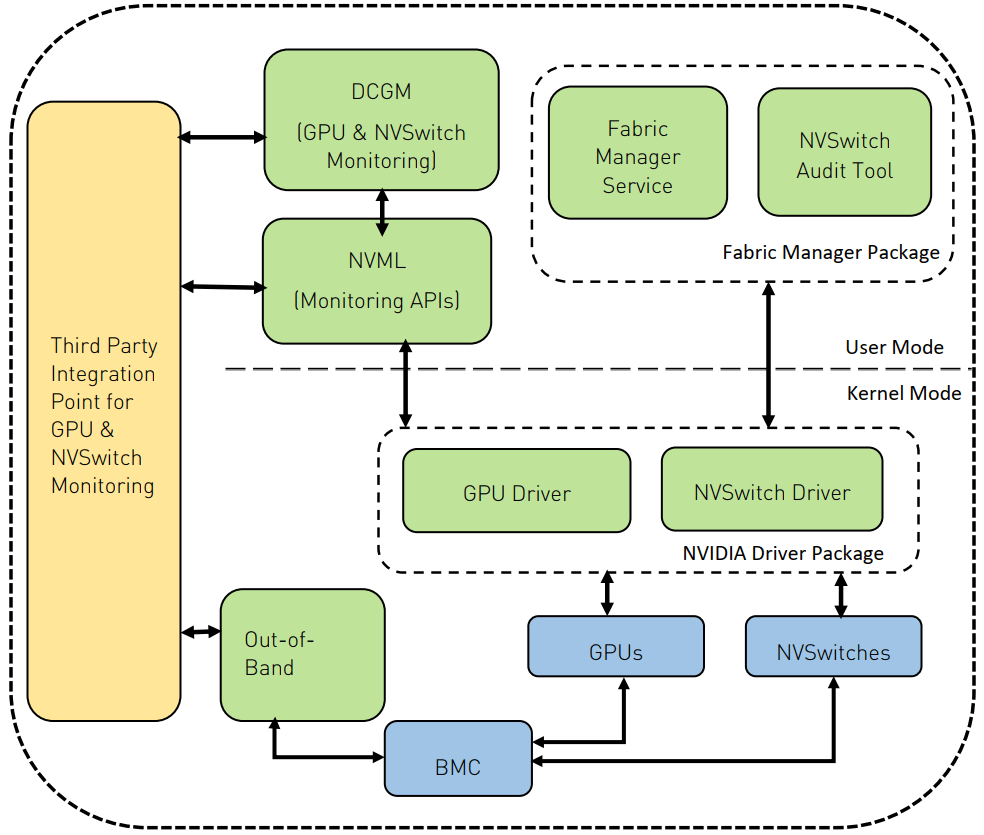 DCGM: nvidia data center gpu manager是一套用于在集群环境中管理和监控 NVIDIA 数据中心 GPU 的工具。它包括主动健康监控、全面诊断、系统警报和治理策略(包括电源和时钟管理)。 DCGM 诊断是一款运行状况检查工具,可以检查基本的 GPU 运行状况,包括是否存在 ECC 错误、PCIe 问题、带宽问题以及运行 CUDA 程序的常见问题。